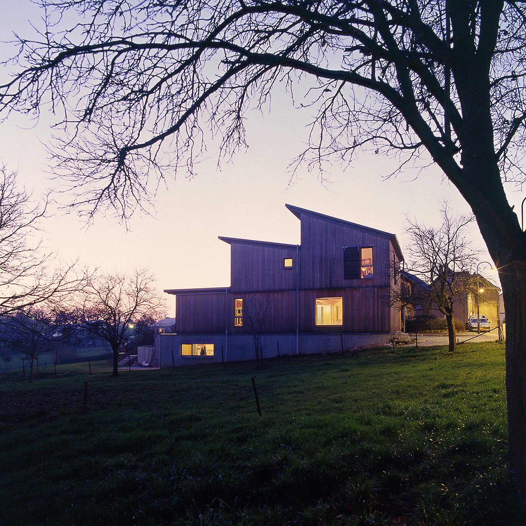 Située en limite Sud du village de Dippach, cette maison est le résultat de deux réflexions majeures :