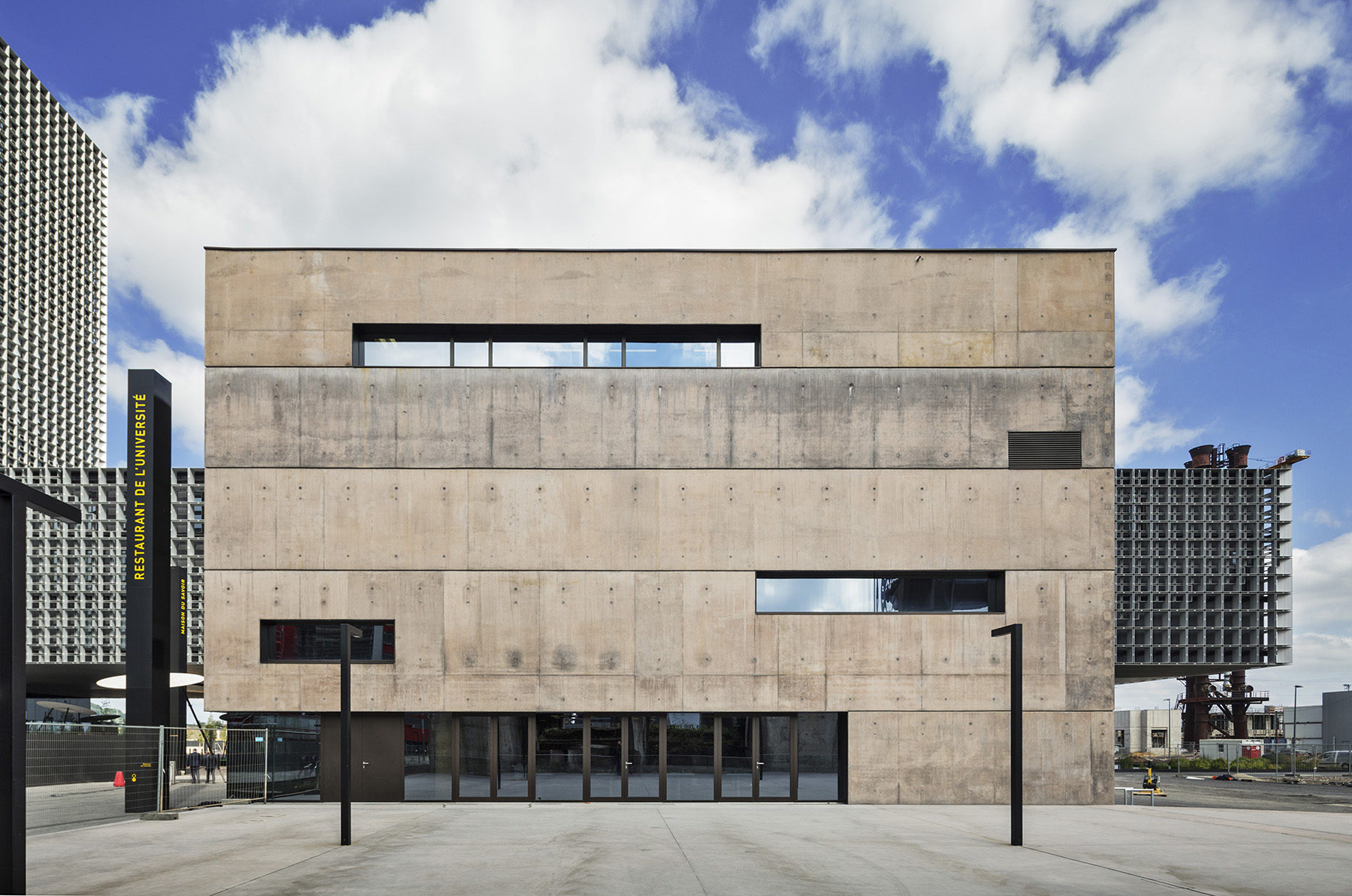 Following an international competition, be baumschlager eberle, in cooperation with Christian Bauer & Associés Architectes, furnished the plot with a new landmark: the “Maison du Savoir” is the communications center for the future university buildings. This is where the general infrastructure, such as lecture halls and seminar rooms as well as professors’ lounges, administrative offices and restaurants, are combined. The individual institutes are grouped facing towards and around this “House of Knowledge” and the library building which is also planned. The “Maison” can be understood as a clear signal within the homogeneous framework of the institutes. With its 18 floors, however, it is also a reference to the height development of the old steel mills left over from the industrial era.