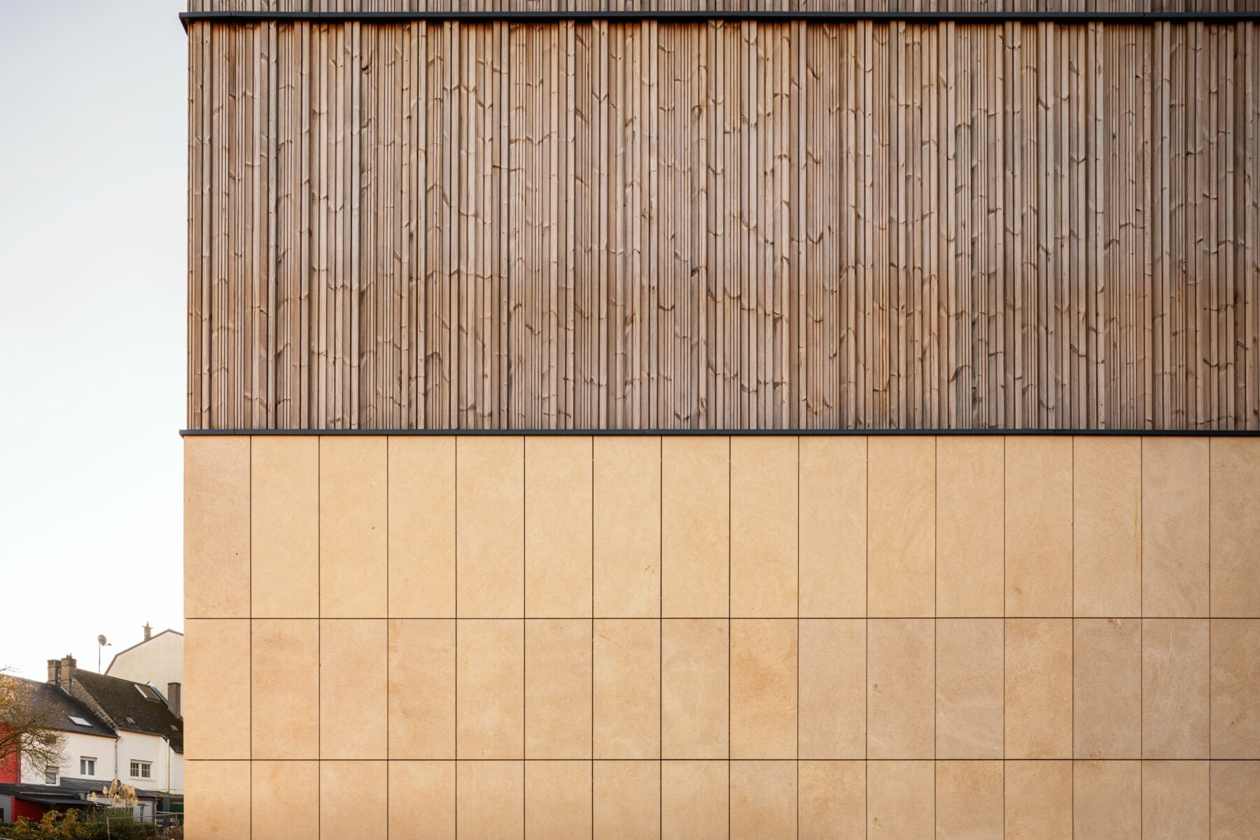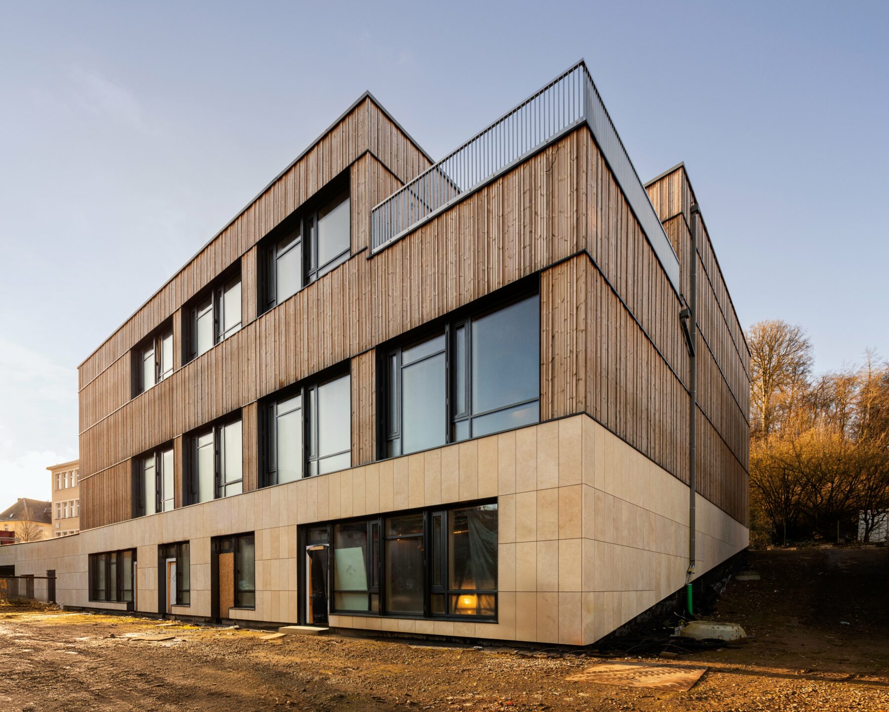 Between 2021 and 2024, the Lydie Schmit School was transformed into a sustainable learning hub. The project restored the 1910 "National Monument" building using Eco-materials and solar power, while adding a modern AAA-rated solid wood annex. Linked by a footbridge, the two structures offer 7,000 m² of bright, functional space integrated with new green zones. The site now harmoniously blends architectural heritage with future-oriented innovation. The focus for our participation will remain on the annex.