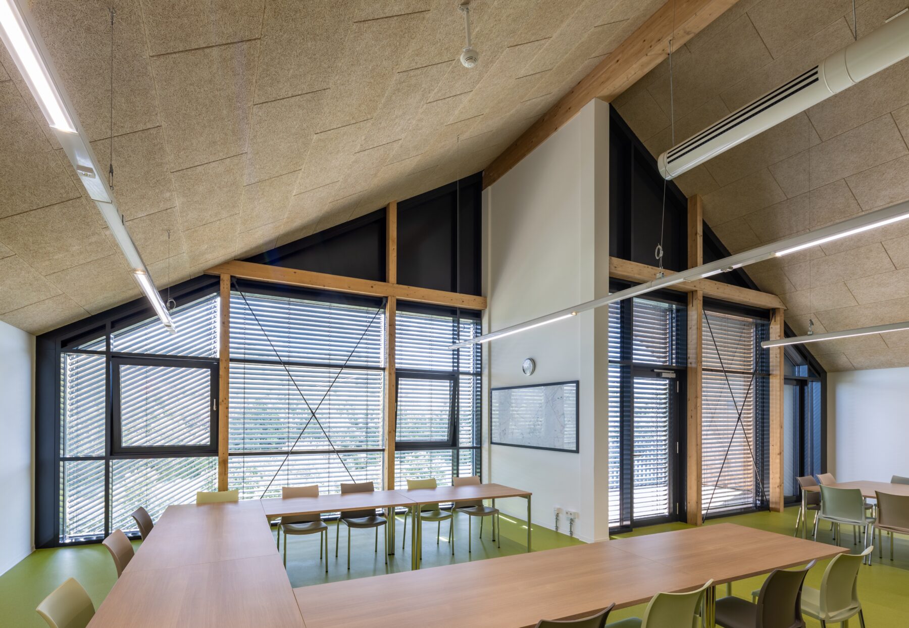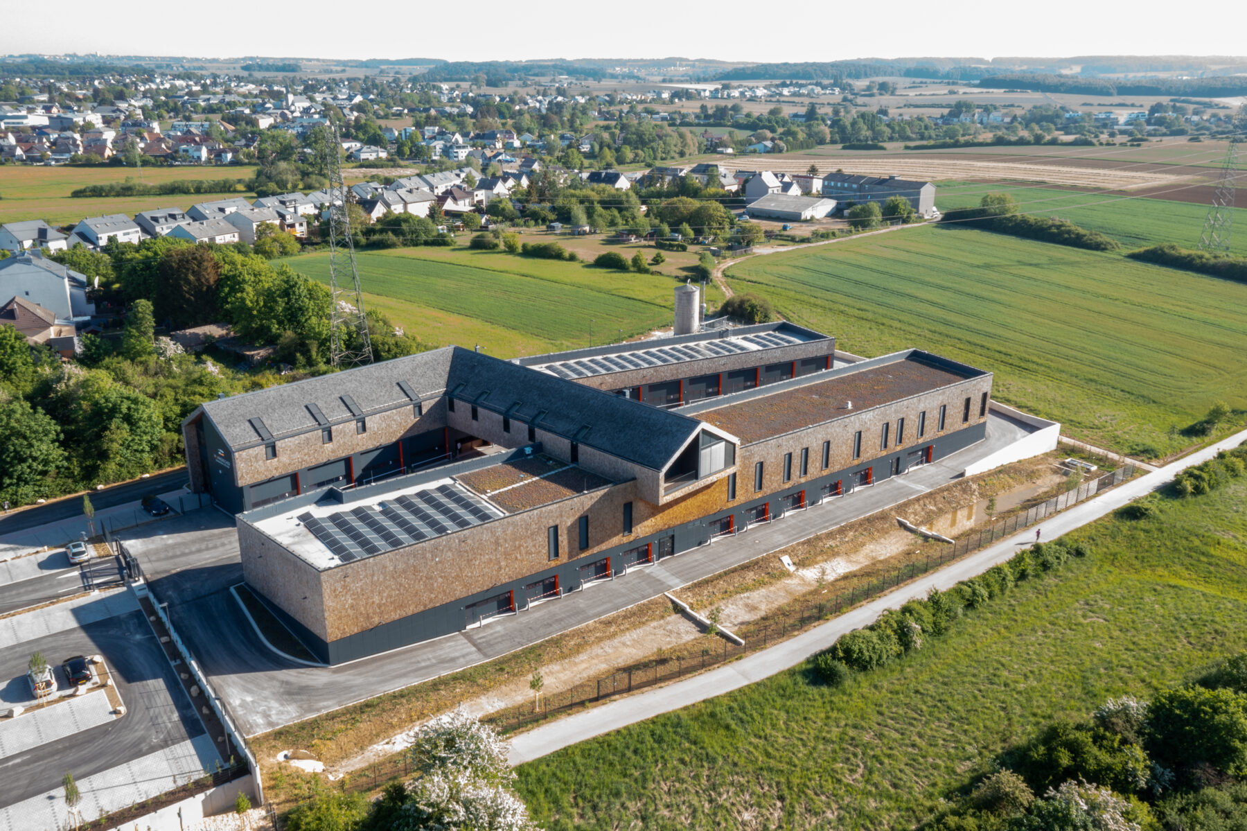 Nouveaux ateliers communaux à Mondercange conçus pour 42 ouvriers. Le projet rassemble les différentes fonctions opérationnelles de la commune sous un même toit afin de raccourcir les trajets internes, optimiser les processus de travail et améliorer la vue d’ensemble. Organisé autour d’une cour intérieure, le bâtiment s’intègre à la topographie existante et développe une architecture fonctionnelle, durable et cohérente avec son environnement.
